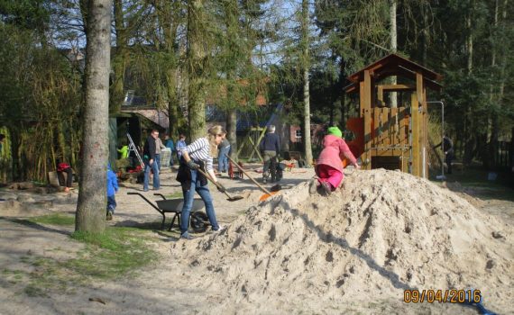 Am 9.04. trafen sich fleißige Eltern, Kinder und Erzieherinnen um das Außengelände des Kindergartens wieder auf Vordermann zu bringen. Gemeinsam wurde geschaufelt, gefegt und Sand gekarrt. Im Sandkaste tauschten wir den Sand aus. Zwischendurch gab es eine leckere Pause mit Hotdogs und Getränken!
