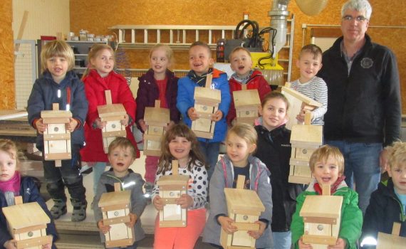 Am 27.03.2018 gingen wir mit den Kobolden zur Tischlerei Jütting. Dort bauten wir mit Herrn Jütting tolle Nistkästen für die Vögel. Zuvor endete unser Projekt mit dem Geflügelzüchterverein „Vom Ei zum Küken“