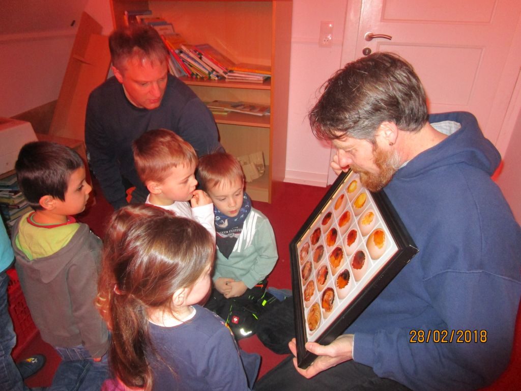 Gemeinsam mit dem Geflügelzüchterverein beobachteten wir, wie lange es dauert, bis ein Küken aus dem Ei schlüpft und wie es sich im Ei entwickelt. Am 21.2. brachten uns Harald Akkermann und Uwe Benenga ganz viele Eier. Ein Brutkasten durfte auch nicht fehlen.
